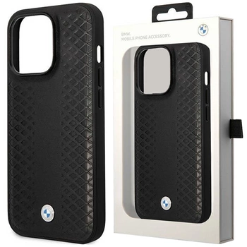 Etui BMW BMHMP14X22RFGK na iPhone 14 Pro Max - czarne Leather Diamond Pattern MagSafe