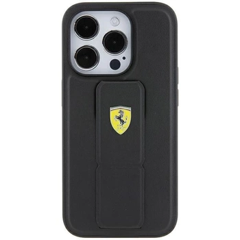 Etui Ferrari Grip Stand Metal Logo na iPhone 15 Pro - czarne