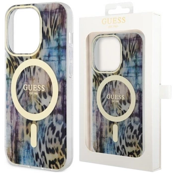 Etui Guess GUHMP14LHLEOPWB na iPhone 14 Pro - niebieskie Leopard MagSafe