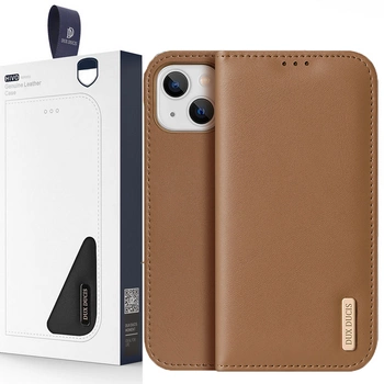 Dux Ducis Hivo skórzane etui z klapką pokrowiec ze skóry naturalnej portfel na karty i dokumenty iPhone 14 Plus brązowy