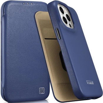 iCarer CE Premium Leather Folio Case skórzane etui iPhone 14 Pro z klapką magnetyczne MagSafe niebieski (WMI14220714-BU)