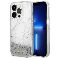 Etui Guess GUHCP14LLCSGSGH na iPhone 14 Pro - białe Liquid Glitter Marble