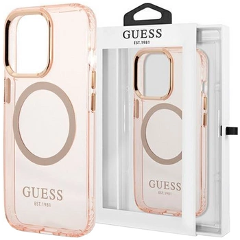 Guess GUHMP13LHTCMP iPhone 13 Pro / 13 6,1" różowy/pink hard case Gold Outline Translucent MagSafe