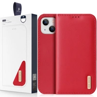 Dux Ducis Hivo skórzane etui z klapką pokrowiec ze skóry naturalnej portfel na karty i dokumenty iPhone 14 Plus czerwony