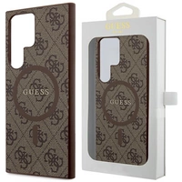 Etui Guess 4G Collection Leather Metal Logo MagSafe na Samsung Galaxy S24 Ultra - brązowe