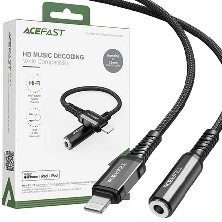 Przeznaczona do telefonów iPhone i tabletów iPad, które nie mają złącza słuchawkowego. Posiada certyfikat MFI (Maide For iPhone), dzięki czemu telefon nie wyświetli komunikatu o nieoryginalnym akcesorium. Kabel na całej długości jest opleciony nylonem. Wtyczki posiadają aluminiową obudowę.