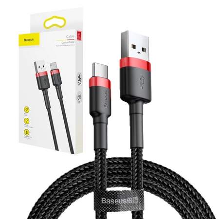 Baseus Cafule Cable wytrzymały nylonowy kabel przewód USB / USB-C QC3.0 3A 0,5M czarno-czerwony (CATKLF-A91)