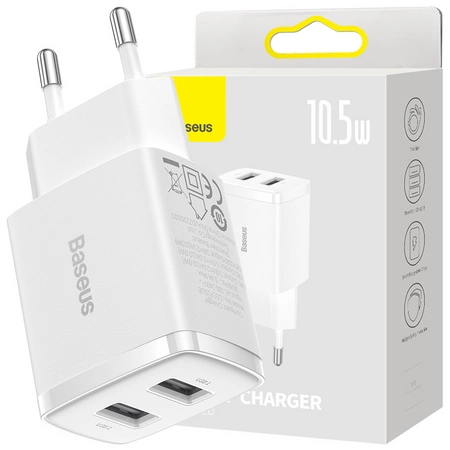 Baseus Compact ładowarka sieciowa 2x USB 10.5W biały (CCXJ010202)