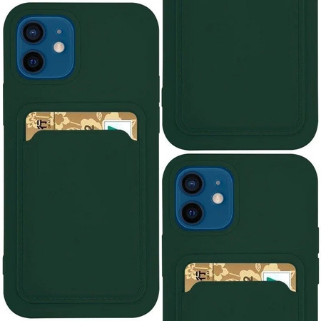 Card Case silikonowe etui portfel z kieszonką na kartę dokumenty do Samsung Galaxy S21+ 5G (S21 Plus 5G) ciemnozielony
