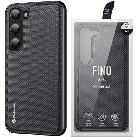 - Najważniejsze cechy etui Dux Ducis Fino do Samsung Galaxy S23+:Materiał TPU wysokiej jakości. Termoplastyczne tworzywo jest odporne na uszkodzenia mechaniczne.Atrakcyjny wygląd. Tył pokrowca jest pokryty warstwą nylonu.Świetne zabezpieczenie przed uszkodz
