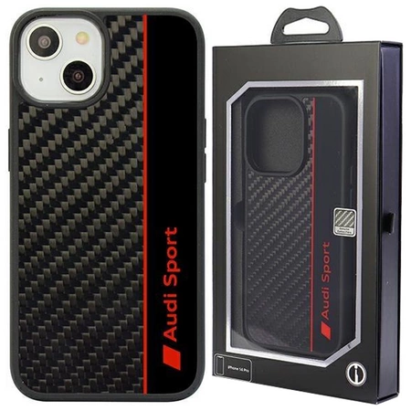 - 1 x Etui Audi Carbon Fiber Stripe na iPhone 14 - czarne AUS-TPUPCIP14-R8/D1-BK