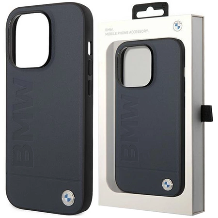 - 1 x Etui BMW BMHMP14LSLLna iPhone 14 Pro - granatowe Leather Hot Stamp MagSafe