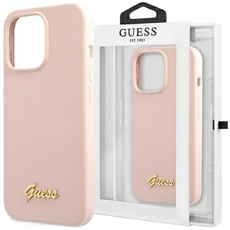 - 1 x Etui Guess GUHCP13XLSLMGLP na iPhone 13 Pro Max 6.7" jasnoróżowy/light pink hardcase Silicone Script Gold Logo