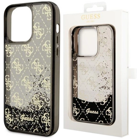 - 1 x Etui Guess GUHCP14LLC4PSGK na iPhone 14 Pro - czarne Liquid Glitter 4G Transculent