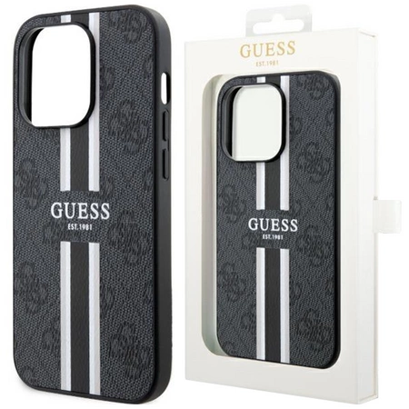 - 1 x Etui Guess GUHMP14LP4RPSK na iPhone 14 Pro - czarne 4G Printed Stripes MagSafe