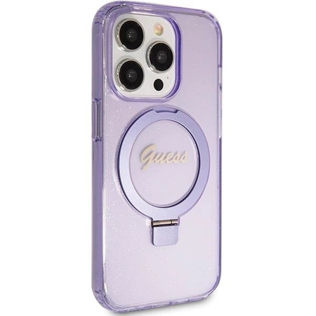 - 1 x Etui Guess Ring Stand Script Glitter MagSafe na iPhone 15 Pro Max - fioletowe