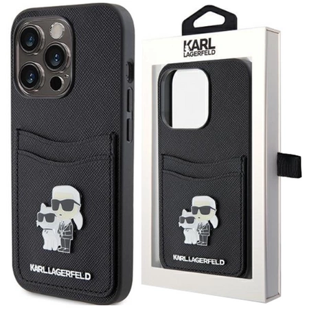 - 1 x Etui Karl Lagerfeld Saffiano Cardslot Karl&Choupette Metal Pin do iPhone 15 Pro - czarne