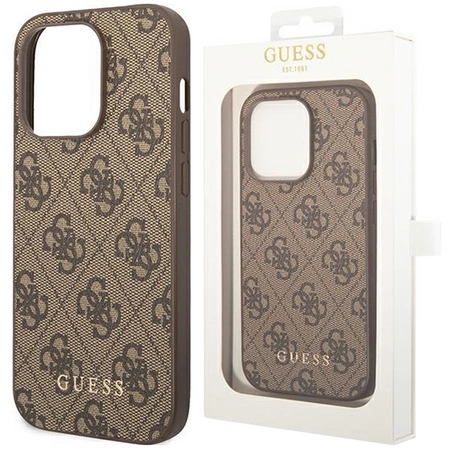 - 1 x Guess GUHCP14SG4GFBR iPhone 14 6,1" brązowy/brown hard case 4G Metal Gold Logo