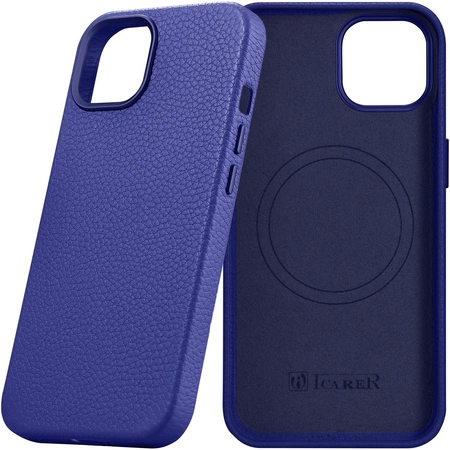 iCarer Litchi Premium Leather Case skórzane etui iPhone 14 Pro magnetyczne z MagSafe ciemnoniebieski (WMI14220710-DB)