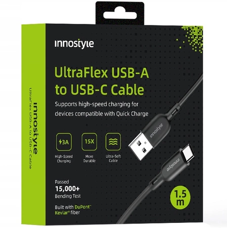 - 1 x Innostyle UltraFlex - kabel USB-A - USB-C 1,5m