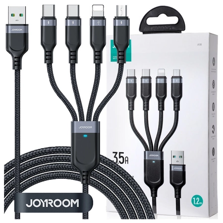 - 1 x Kabel USB 4w1 USB-A - USB-C / 2 x Lightning / Micro do ładowania i transmisji danych 1.2m Joyroom S-1T4018A18 - czarny