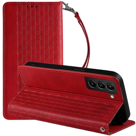 Magnet Strap Case etui do Samsung Galaxy S22+ (S22 Plus) pokrowiec portfel + mini smycz zawieszka czerwony