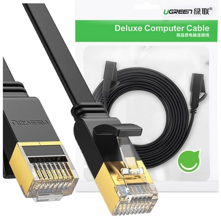 Ugreen płaski kabel przewód internetowy sieciowy Ethernet patchcord RJ45 Cat 7 STP LAN 10 Gbps 3 m czarny (NW106 11262)