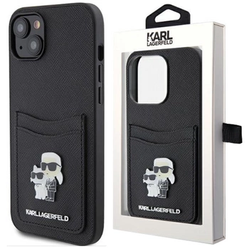 Etui Karl Lagerfeld Saffiano Cardslot Karl&Choupette Metal Pin do iPhone 15 - czarne