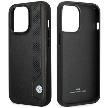 Etui BMW BMHMP14X22RPSK na iPhone 14 Pro Max - czarne Leather Seats Pattern MagSafe