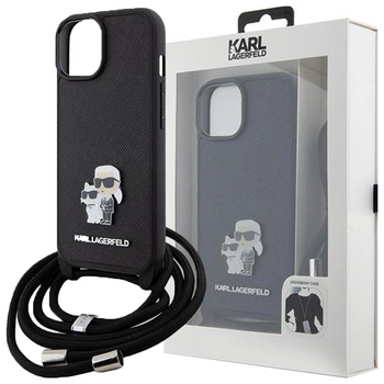 Etui Karl Lagerfeld Crossbody Saffiano Metal Pin Karl & Choupette na iPhone 15 - czarne