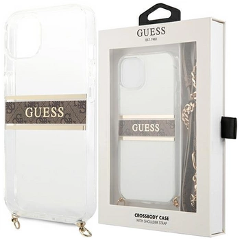 Guess GUHCP13SKC4GBGO iPhone 13 mini 5,4" Transparent hardcase 4G Brown Strap Gold Chain