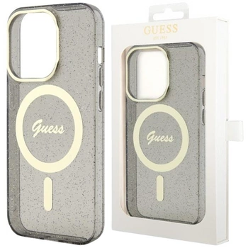 Etui Guess GUHMP14LHCMCGK na iPhone 14 Pro - czarne Glitter Gold MagSafe