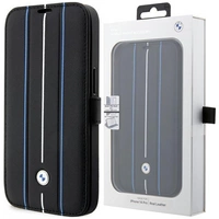 Etui BMW BMBKP14L22RVSK na iPhone 14 Pro - czarne bookcase Leather Stamp Blue Lines