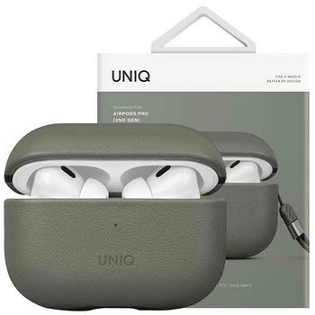 Etui Uniq Terra na AirPods Pro 2 gen. Genuine Leather zielony/lichen green