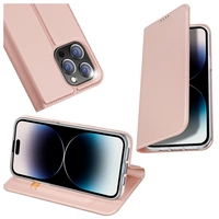 Etui do iPhone 15 Pro Max pokrowiec z klapką i portfelem Dux Ducis Skin Pro - różowe