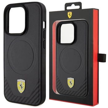 Etui Ferrari Carbon Metal Logo MagSafe na iPhone 15 Pro - czarne
