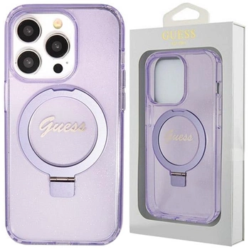 Etui Guess Ring Stand Script Glitter MagSafe na iPhone 15 Pro Max - fioletowe
