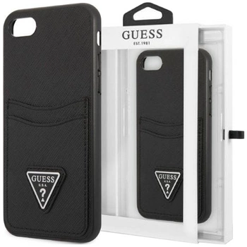 Etui Guess GUHCI8PSATPK na iPhone 7 / 8 / SE 2020 / SE 2022 hardcase - czarne Saffiano Triangle Logo Cardslot