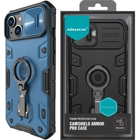 Nillkin CamShield Armor Pro Case etui iPhone 14 Plus pancerny pokrowiec z osłoną na aparat ring podstawka niebieskie
