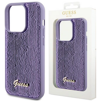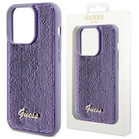 Etui Guess Sequin Script Metal na iPhone 15 Pro - fioletowe