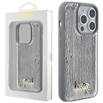 Etui Guess Sequin Script Metal na iPhone 15 Pro - srebrne