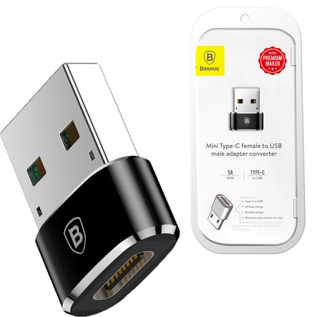 Wyprodukowana przez firmę Baseus niewielka przejściówka ze złącza USB Type-C na USB.