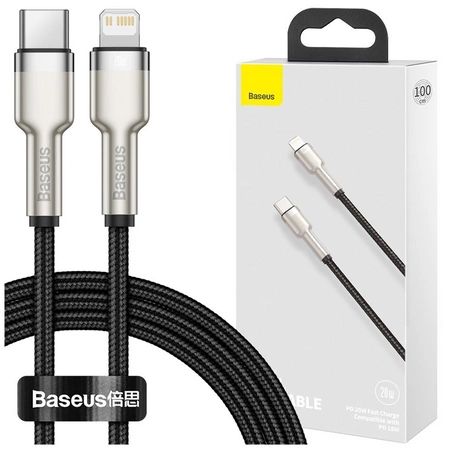 - 1 x Baseus Cafule Metal Data kabel USB Typ C - Lightning 20 W Power Delivery 1 m czarny (CATLJK-A01)