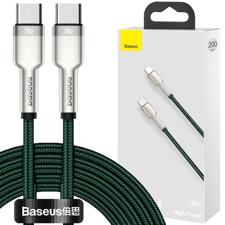 Baseus Cafule Metal Data kabel USB Typ C - USB Typ C 100 W (20 V / 5 A) Power Delivery 2 m zielony (CATJK-D06)