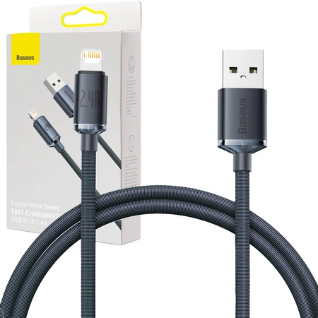 Baseus Crystal Shine Series kabel przewód USB do szybkiego ładowania i transferu danych USB Typ A - Lightning 2,4A 1,2m czarny (CAJY000001)