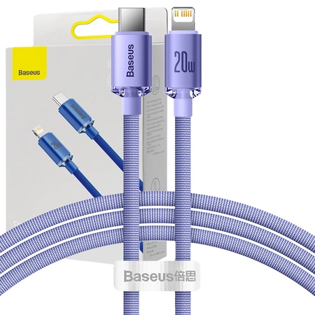 Baseus Crystal Shine Series kabel przewód USB do szybkiego ładowania i transferu danych USB Typ C - Lightning 20W 1,2m fioletowy (CAJY000205)
