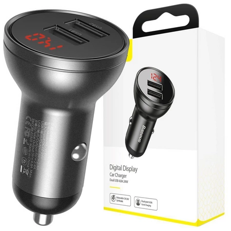 Baseus ładowarka samochodowa 2x USB 4,8A 24W z LCD szary (CCBX-0G)