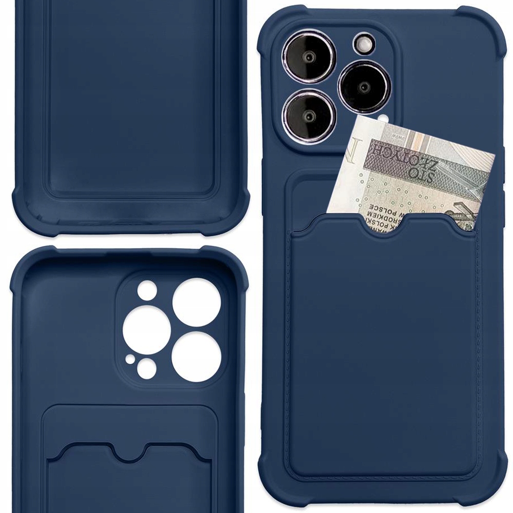 - 1x Card Armor Case etui pokrowiec do iPhone 13 mini portfel na kartę silikonowe pancerne etui Air Bag granatowy