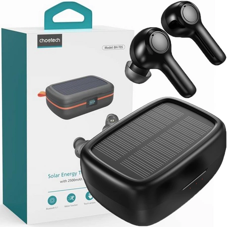- 1 x Choetech słuchawki bezprzewodowe TWS z panelem słonecznym czarny