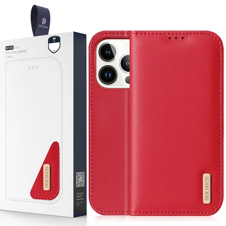 Dux Ducis Hivo skórzane etui z klapką pokrowiec ze skóry naturalnej portfel na karty i dokumenty iPhone 14 Pro Max czerwony